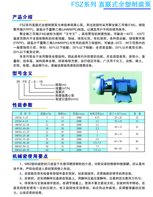 >> FSZ系列直聯(lián)式全塑耐磨泵